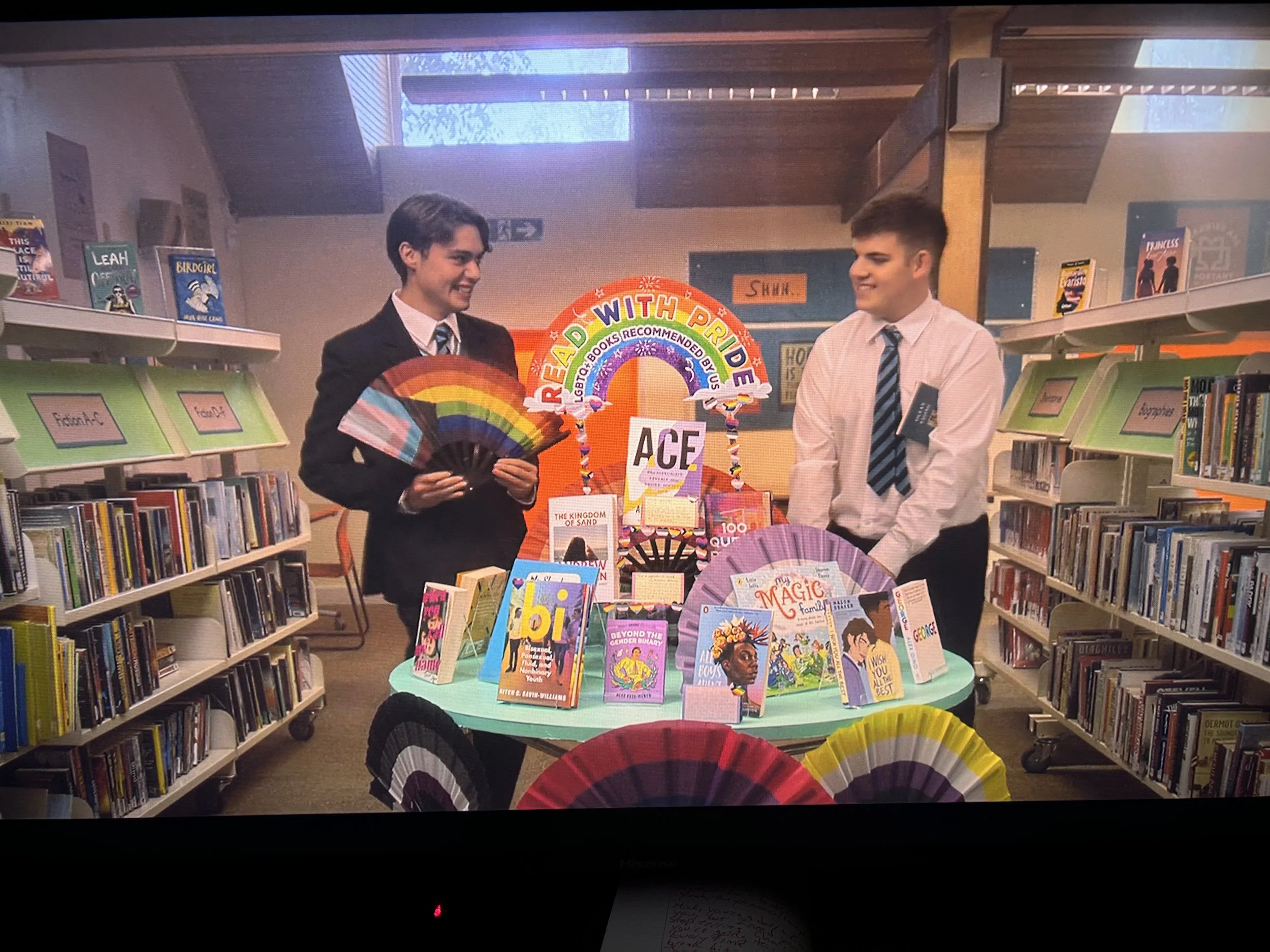 Isaac and James are adorable together. And I LOVE this library display!